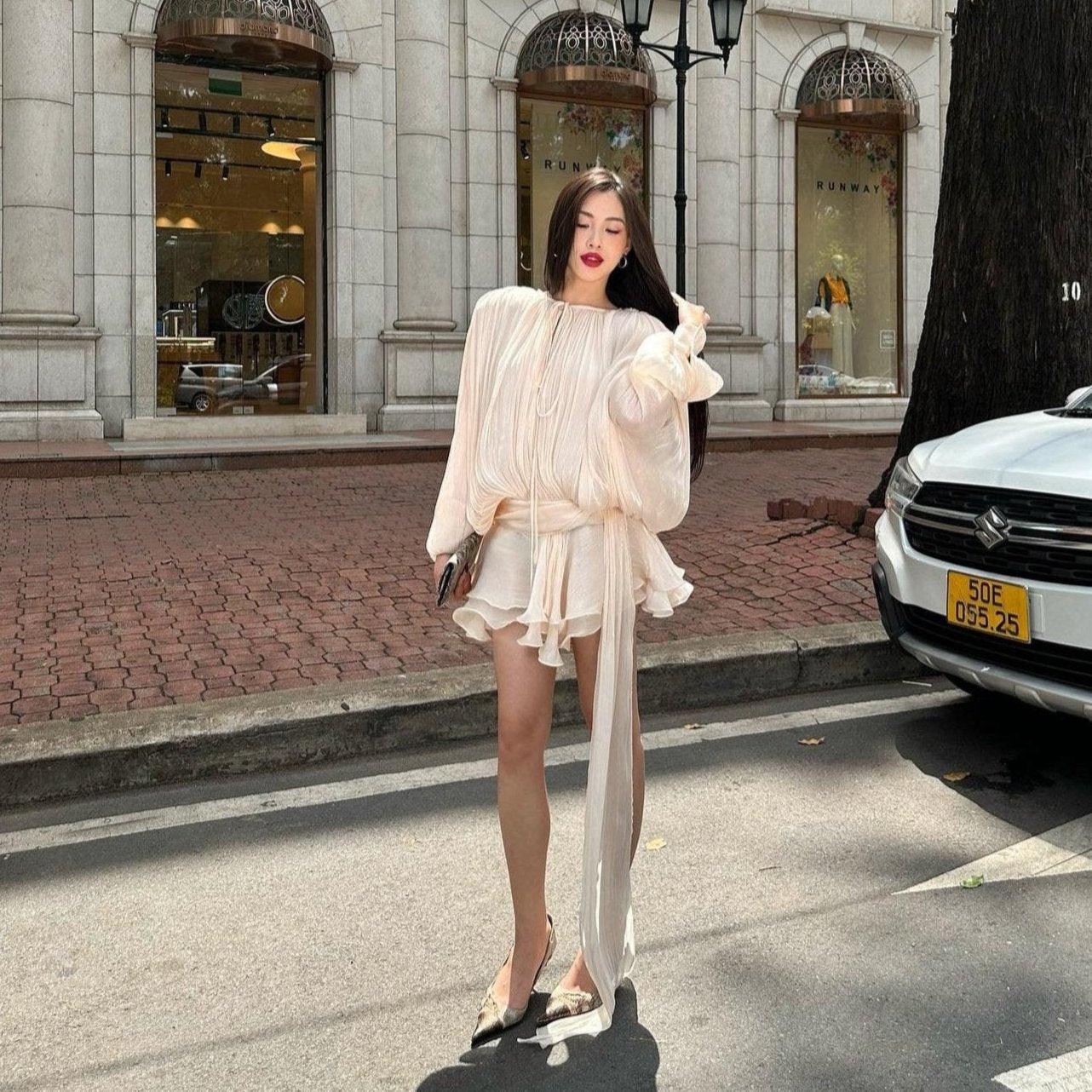 TARO | Pleated Ruffled Mini Dress